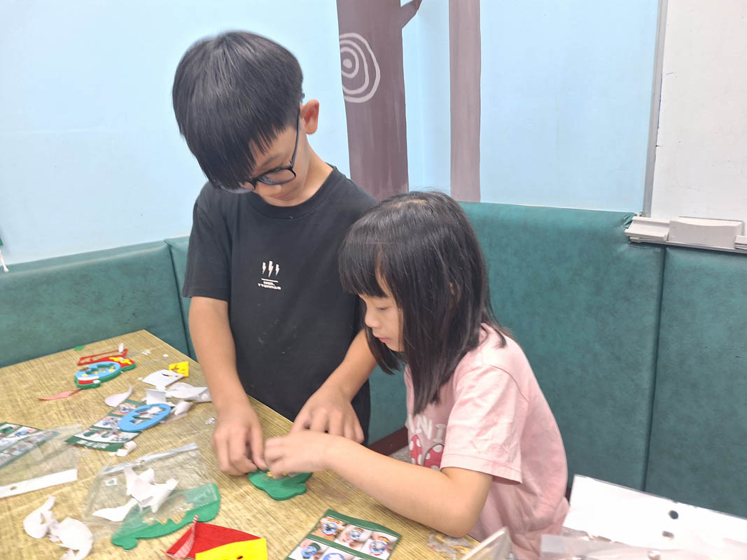 本月活動中,帶班老師帶領學童們進行聖誕主題的製作,讓孩子們親自製作卡片與聖誕吊飾,作為送給志工老師們的節日回禮。孩子們專心投入創作,有的在卡片上寫下感謝祝福,有的細心搭配顏色與裝飾吊飾,每一份作品都充滿心意。