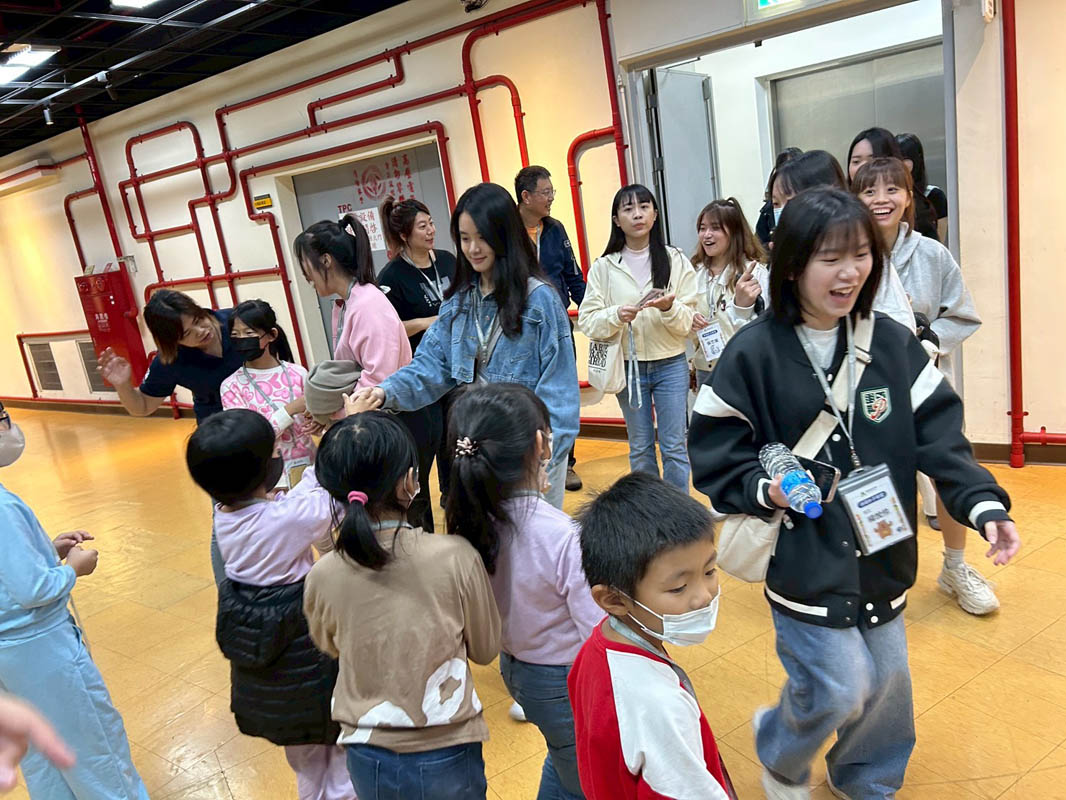 午餐後,學童們拉著志工搭乘館內小火車,一起看《蠟筆小新:來自外太空的訪客》電影、參觀展覽,過程中孩子主動提問,志工耐心解答並陪伴探索,大小夥伴的互動場景,我們相信這對學童和志工來說都是正向與美好關係的展現。攝影師捕捉到一張張燦爛笑容,學童們不再害羞,反而樂於被拍,每位大小夥伴都成了今天最美的主角及模特兒。