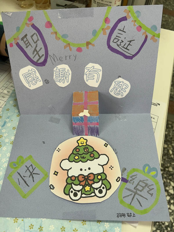 12月份是充滿聖誕與感恩的季節,第一週視訊志工與學童為了彼此送上祝福,暫停一次伴讀活動。當社工老師發下手作聖誕卡的色卡與圖畫材料時,我們看見學童們從一開始的小皺眉、嘗試鉛筆構圖,到後來熟練地使用剪刀裁剪色卡與色紙,過程中展現了專注與耐心。完成作品後,學童們自信地將卡片遞交給社工老師,滿滿的謝意與創意呈現在每一張卡片中。這不僅是藝術創作,更是學童們學會表達情感、體驗付出的美好。活動中,學童們好奇地問:「志工也會寄卡片給我們嗎?」、「志工會變成聖誕老公公來這裡送禮物給我們嗎?」,許多的聖誕期待一一冒出在這場手作聖誕卡活動的交談中,好有趣喔!12/24每個學童收到了視訊志工的聖誕福袋-奶油膠相框、卡片和餅乾,每個人都迫不及待打開禮物袋,笑容洋溢!他們期待的聖誕禮物真的實現了耶!