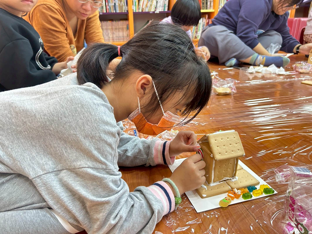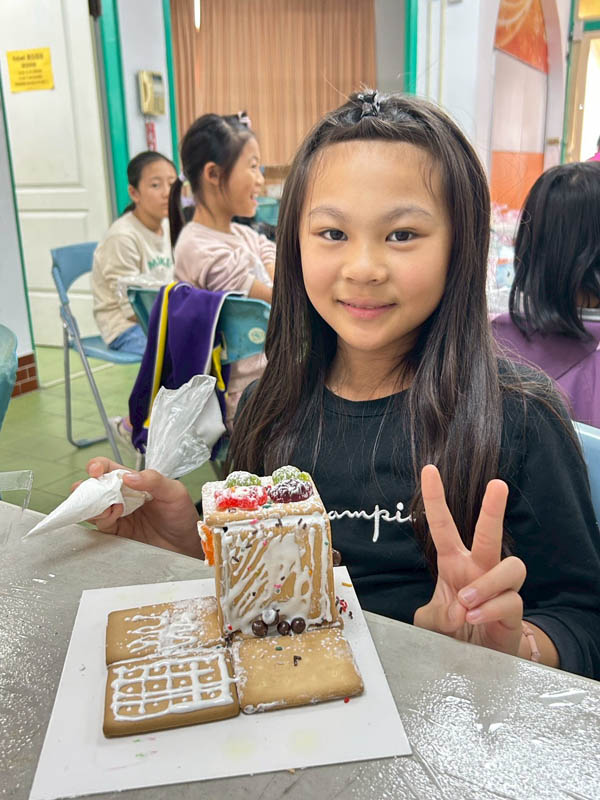12/17學堂安排薑餅屋DIY活動,學童們拿到材料包後忍不住偷舔糖霜,笑聲不斷,氣氛熱鬧。在建薑餅屋的過程中,學童們體會到「萬事起頭難」,薑餅屋倒塌時,他們不斷尋求同學與老師的協助,學會合作與解決問題。當房子終於完成,臉上洋溢著成就感與喜悅,這是他們努力與堅持的最棒禮物。有些學童甚至在視訊伴讀時,開心地與志工分享自己的作品,我們看見學童展現自信與表達能力的一面。這個月的活動,不僅帶來節慶的歡樂,更讓孩子們在創作、合作與情感表達中獲得寶貴的成長。