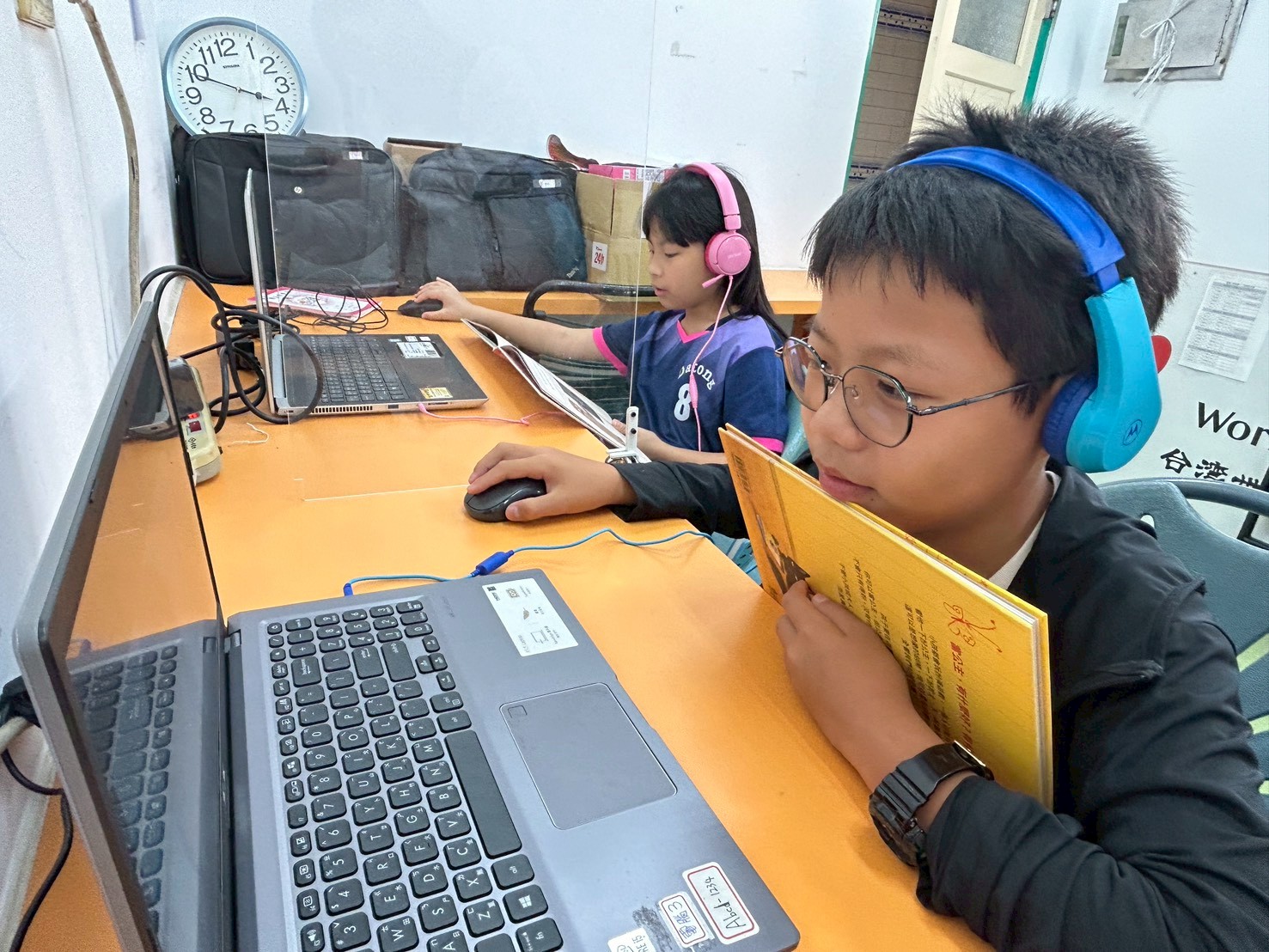 03月份,學堂正式啟動新學期課程與視訊伴讀服務。第一週,學童在課輔教室裡,彷彿開啟「期待模式」,一直追問社工老師:「老師~今天有視訊嗎?」、「我今天是要找故事書對嗎?」